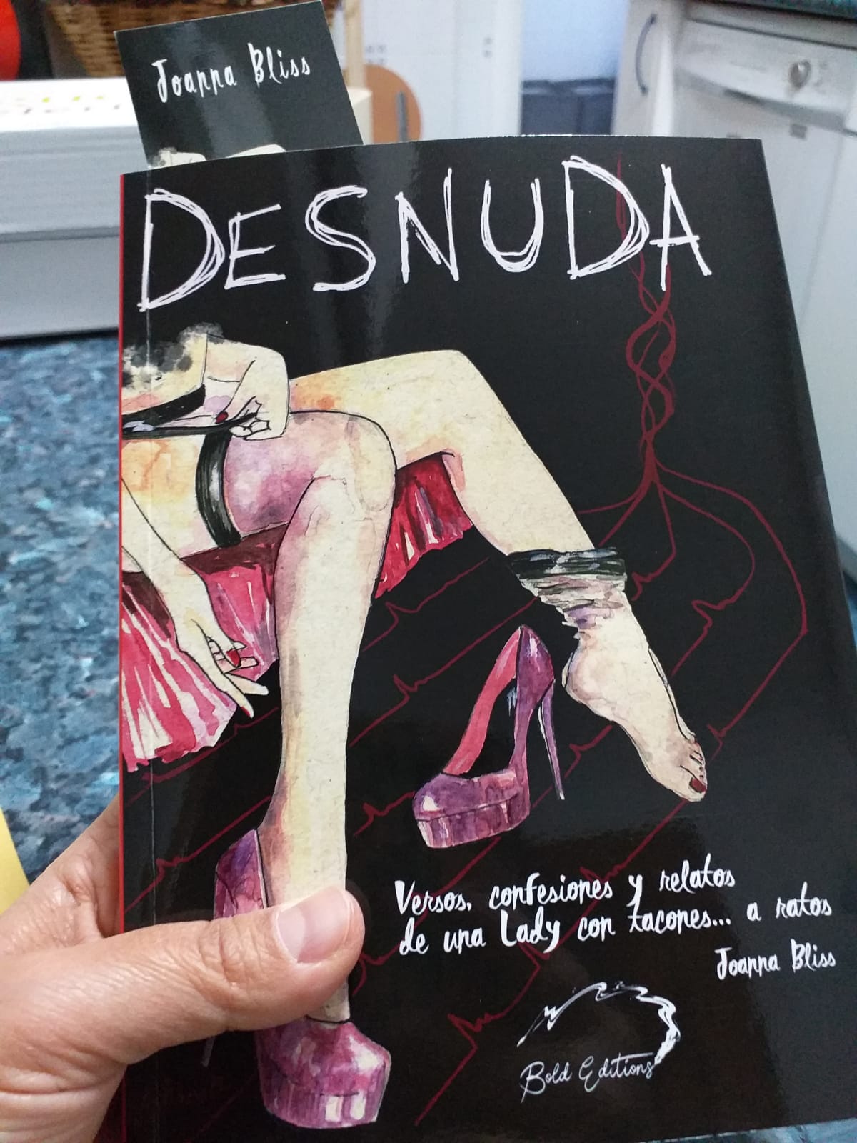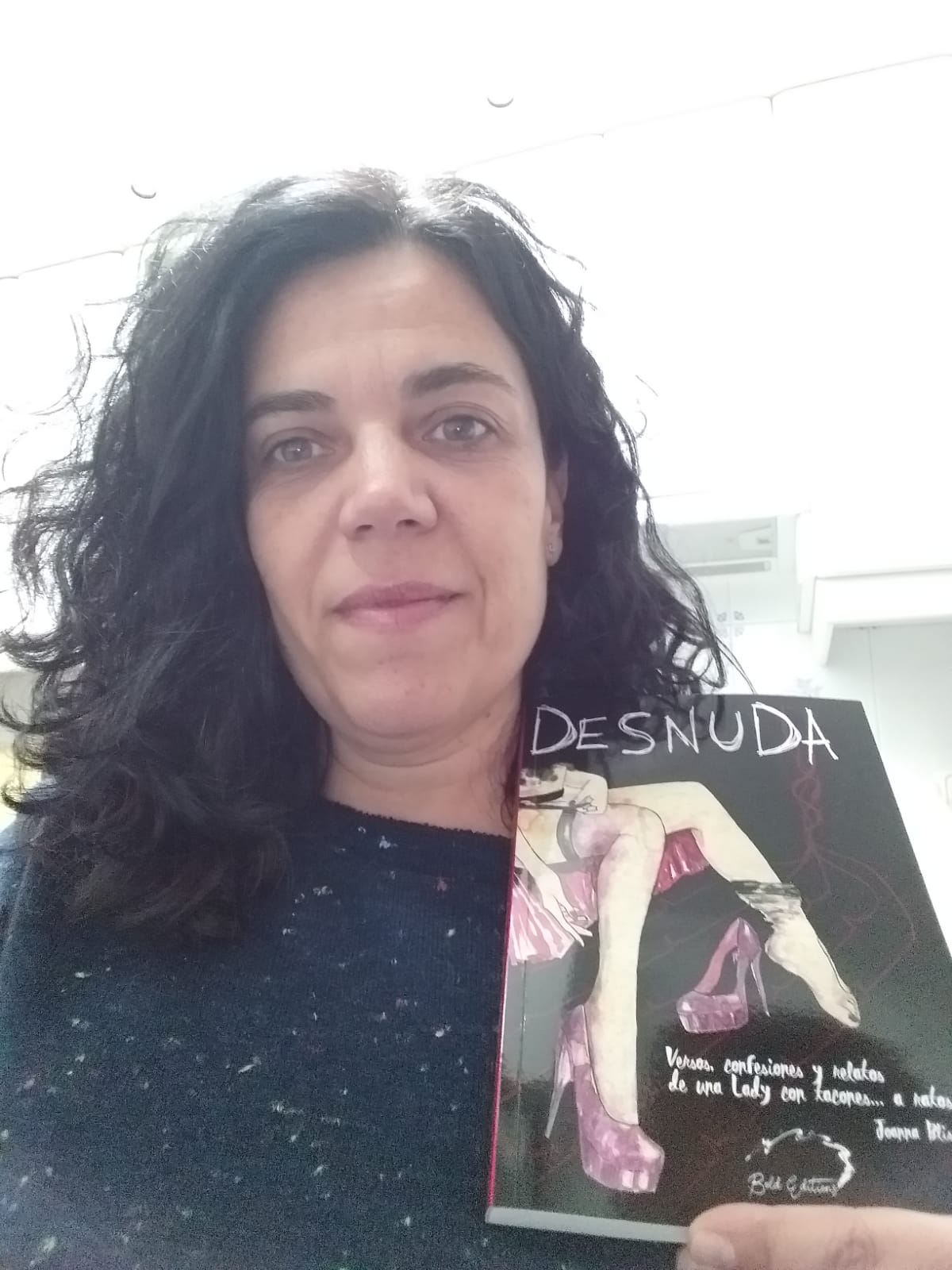 En líneas generales, la poesía, el relato y el cuento, tienen para muchos lectores un atractivo especial. Su contenido va metido en pequeñas dosis que pueden constar de una, dos, tres o pocas más páginas, y si además vienen recopilados en formato libro, sabemos que podremos encontrar uno detrás de otro en una maravillosa sucesión de historias breves. Resulta curioso que este sea un país en el que este género — especialmente el del relato—, no sea demasiado valorado por los editores de casa y sean muy pocos los autores nuestros conocidos por este tipo de obras, cuando precisamente han sido esos editores los que nos han hecho llegar esos mismos relatos de autores latinoamericanos o norteamericanos como pueden ser: Julio Cortázar, Jorge Luís Borges, Gabriel García Márquez, Raymond Carver, Charles Bukowski o Ernest Hemingway, por citar a pocos entre los muchos grandes que se iniciaron en la literatura escribiendo historias en las páginas de los periódicos, y que no dejaron de practicar la historia corta a lo largo de sus prolíficas carreras. Afortunadamente, Joanna no ha sido una autora que se haya amedrentado ante esa desgana por parte del mercado editorial, y en su día, decidió expresarse, y se expresa, en este formato que muchos pensamos que puede llegar a constituir parte importante de la narrativa en un futuro más bien cercano. En cualquier caso... sea Joanna o no, «una lady con tacones... a ratos», lo que está claro es que en su obra, se nos muestra inequívocamente... Desnuda.